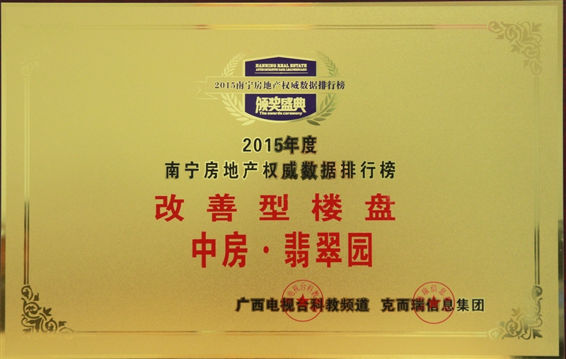 • 中房翡翠香頌榮獲2015年區(qū)域標(biāo)桿名盤