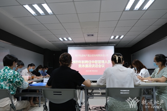 為深入貫徹落實全面從嚴治黨要求,提高領導干部廉潔自律意識,7月30日上午,軌道地產咨詢公司黨支部書記、董事長劉燕對新提拔聘任的6名中層領導干部進行集體廉政談話,會議由軌道地產咨詢公司總經理鄧斯敏主持。