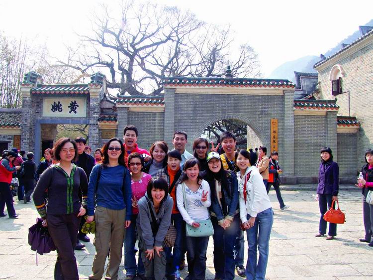 第三日清晨,整裝待發(fā)八點(diǎn)前往黃姚古鎮(zhèn)。賀州是粵東的一座新興城市,而黃姚,卻有著近千年的厚重。從古鎮(zhèn)入口前左邊的一條岔路走進(jìn)去,首先觸目的便是一條清澈的小溪、一棵參天的古榕樹(shù),我們開(kāi)始細(xì)細(xì)觀賞這個(gè)小鎮(zhèn)。古榕的軀干伸向小溪,又從空中垂下縷縷氣根,與水中的倒影連為一體。溪邊水井里清可見(jiàn)底,偶有小魚(yú)游動(dòng)。據(jù)說(shuō)黃姚是按九宮八卦陣式布局,鎮(zhèn)上的石板街有8條,共99999塊青石板,最早鋪砌于清順治年間。年代久遠(yuǎn),不知有多少人走過(guò),青石板已被磨得像鏡子般光滑,隱約泛著人影。橋下的姚江,如今看水依舊清碧,可是繁華不再,顯赫的牌匾也只能靜靜地訴說(shuō)著昔日的輝煌。石板路的小村落很安靜,人們過(guò)著日常的生活,村婦們?cè)诰^溪邊,淘菜洗衣,交流信息,菜渣、閑話都隨溪水流去,并不對(duì)外來(lái)的游客有格外的好奇。孩子們快樂(lè)地嬉戲著,在那些蜿蜒的巷子里不時(shí)冒出他們快樂(lè)的喧嘩。宗祠府第這樣的舊時(shí)輝煌不經(jīng)意地散布于鎮(zhèn)上的民居之中,亭閣前的聯(lián)匾,記錄著文人騷客對(duì)黃姚的鐘愛(ài),只是年代遠(yuǎn)去,如今物是人非。陽(yáng)光下的青石板路上有時(shí)候也會(huì)躺著狗或者貓,你從它們身上跨過(guò)去的時(shí)候,它們會(huì)懶懶地翻翻眼皮,然后繼續(xù)睡在陽(yáng)光里。雞們顯得勤快些,會(huì)邁著方步走在你前面東看看西瞅瞅,如果你不急,它會(huì)一直走在你前面,時(shí)間對(duì)它們沒(méi)有任何意義。還有那些老房子,任何一座都可能藏著一個(gè)故事。結(jié)了蛛網(wǎng)的窗欞恐怕已有了幾百年的歷史,但是沒(méi)有人把這當(dāng)成了不得的事情,一切如常,平靜隨意。