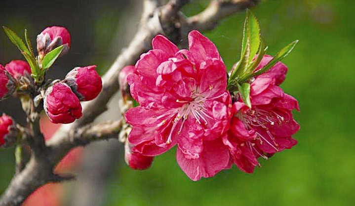 桃花是我國(guó)傳統(tǒng)的園林花木,其樹態(tài)優(yōu)美,枝干扶疏,花朵豐腴,色彩艷麗,為早春重要觀花樹種。桃花原產(chǎn)于我國(guó)中部及北部,栽培歷史悠久,現(xiàn)各地廣為種植。性喜陽(yáng)光、耐寒、 耐旱、不耐水濕。