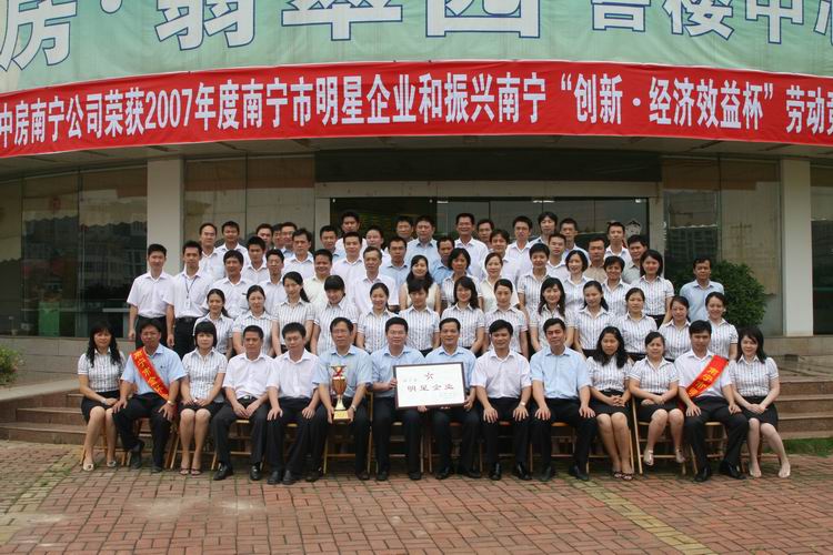 中房南寧公司榮獲2007年度南寧市明星企業(yè)和振興南寧“創(chuàng)新、經(jīng)濟(jì)效益杯”勞動(dòng)競賽金杯獎(jiǎng)